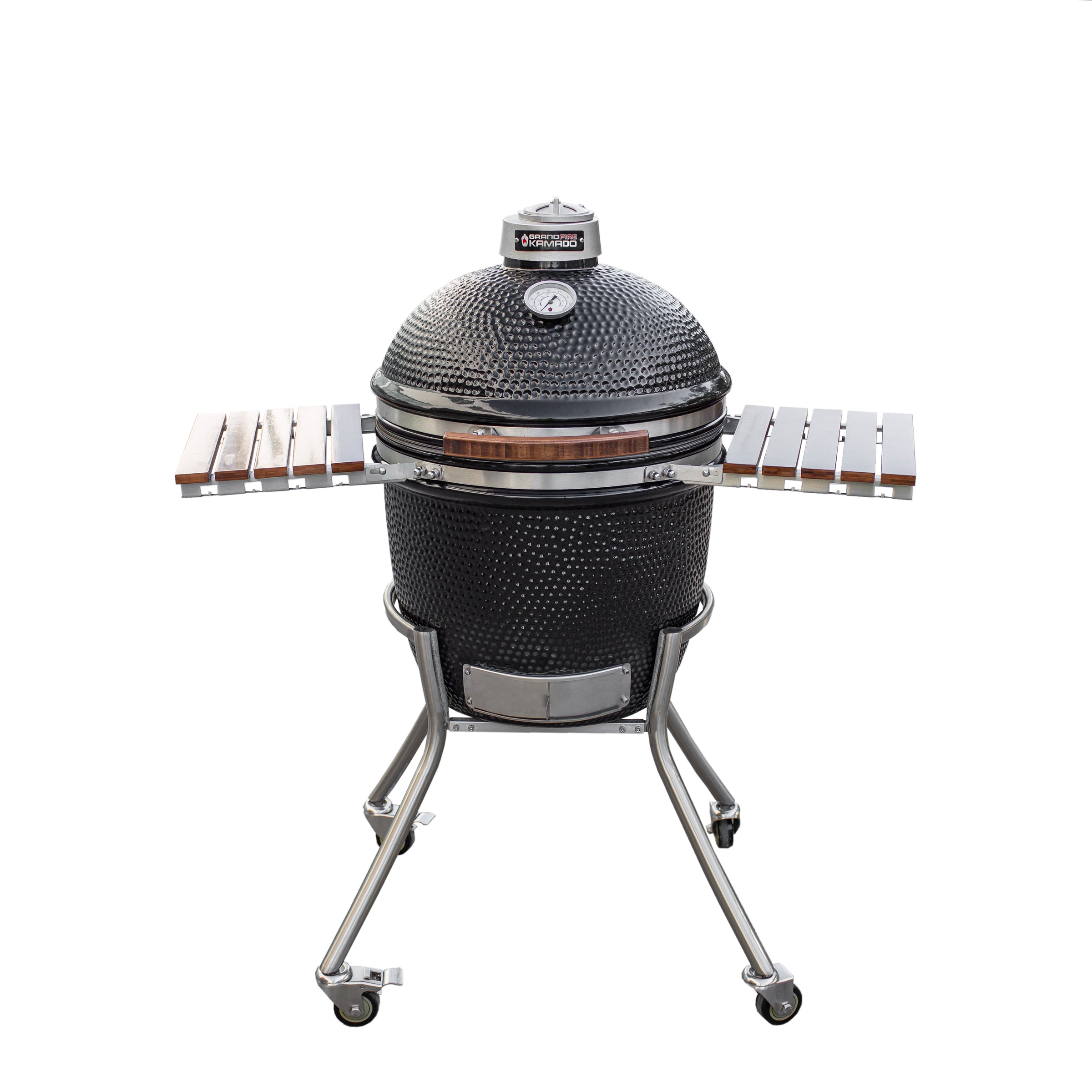 The heavy-duty stainless steel cart ensures mobility and stability, giving you the flexibility to move your Kamado with ease. Lockable castors provide a secure base, so your grill stays steady while you cook.