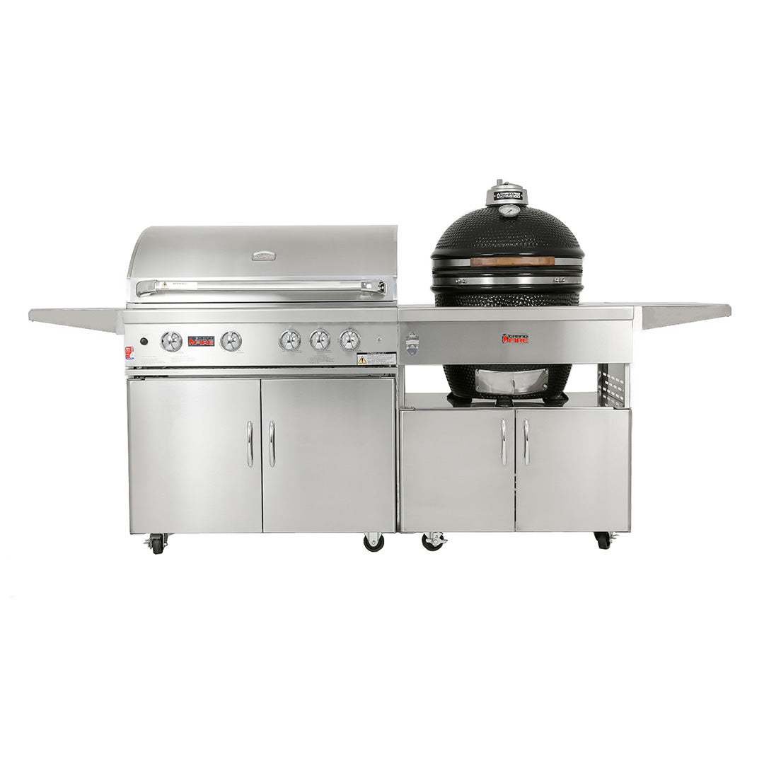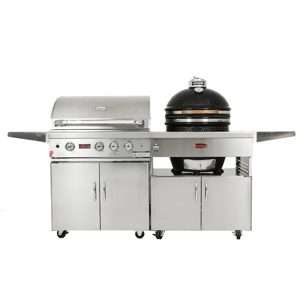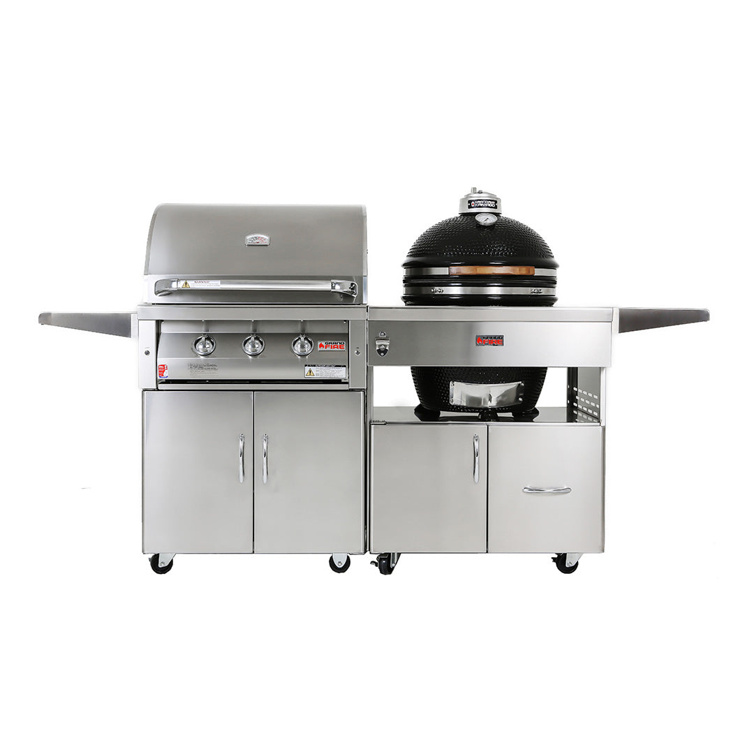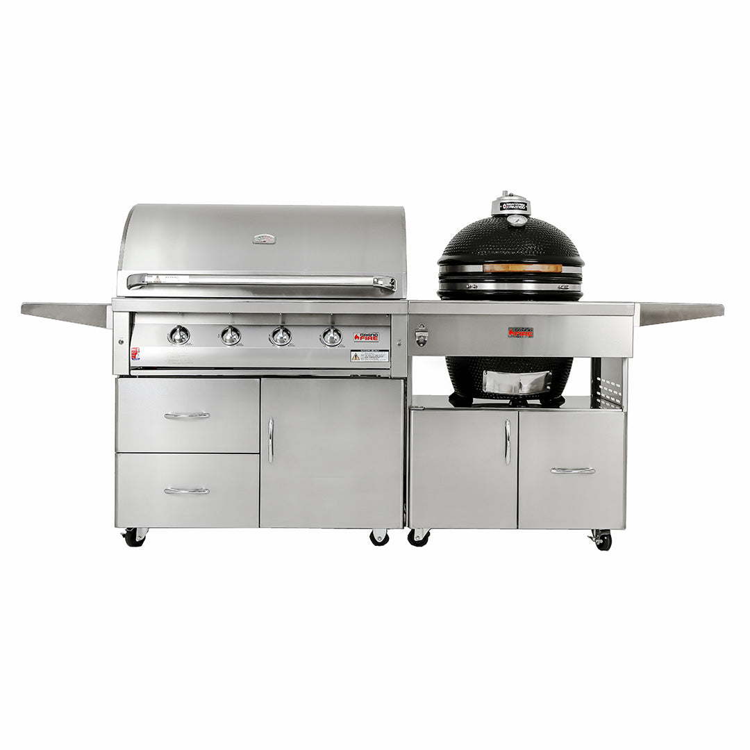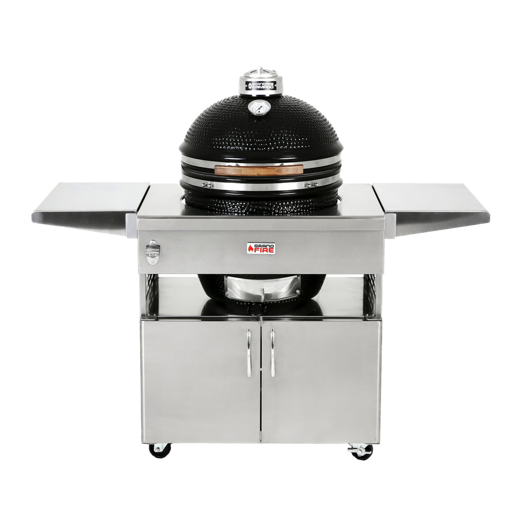 The heavy-duty stainless steel cart ensures mobility and stability, giving you the flexibility to move your Kamado with ease. Lockable castors provide a secure base, so your grill stays steady while you cook.